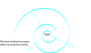 The starting point for design is simple a heuristic thinking technique that applies universally! To explain it best I made the web page interactive click on the buttons in sequence each step will be explained! In this sequence I concentrate on showing use of WH5 technique. It means derive a question for each topic by asking what, where, when, why, how?One goes into greater and greater detail with each step. In other words one knows more about the topic and issues one does not know about! By presenting it in a circular fashion with the various topics evolving in greater and greater detail, it provides a track record of ones thought process and overview of the process so it is easy to check if one missed something or is being duplicated. The technique is called Design spiral!